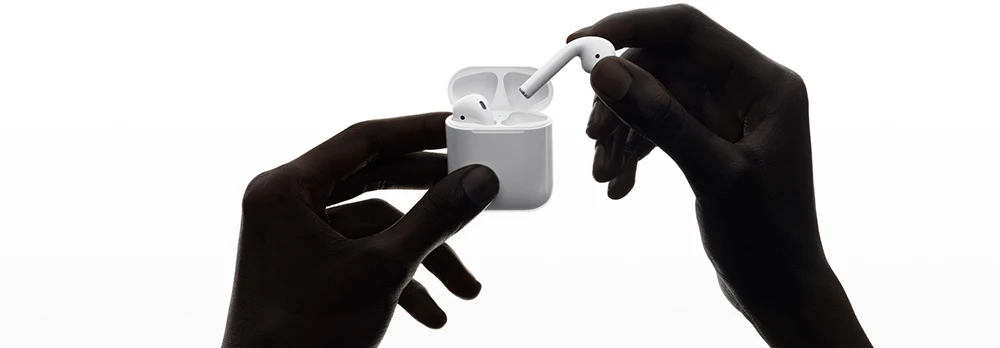 após um simples toque configuração, AirPods estão automaticamente ativados e sempre conectados. usando eles é tão fácil. Eles pode sentir quando eles são em seus ouvidos e pausa quando você pega eles fora. E o AirPods experiência é tão incrível seja você é ouvindo seu iPhone, Apple Watch, iPad ou Mac.